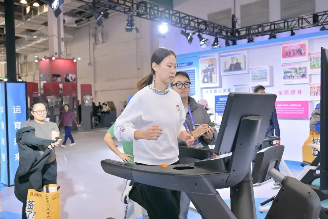 During the conference, CCTV reporters visited the Evergreen Experience Area to conduct on-site interviews on the progress of national fitness activities, trends in outdoor sports, and technological upgrades of fitness equipment.
