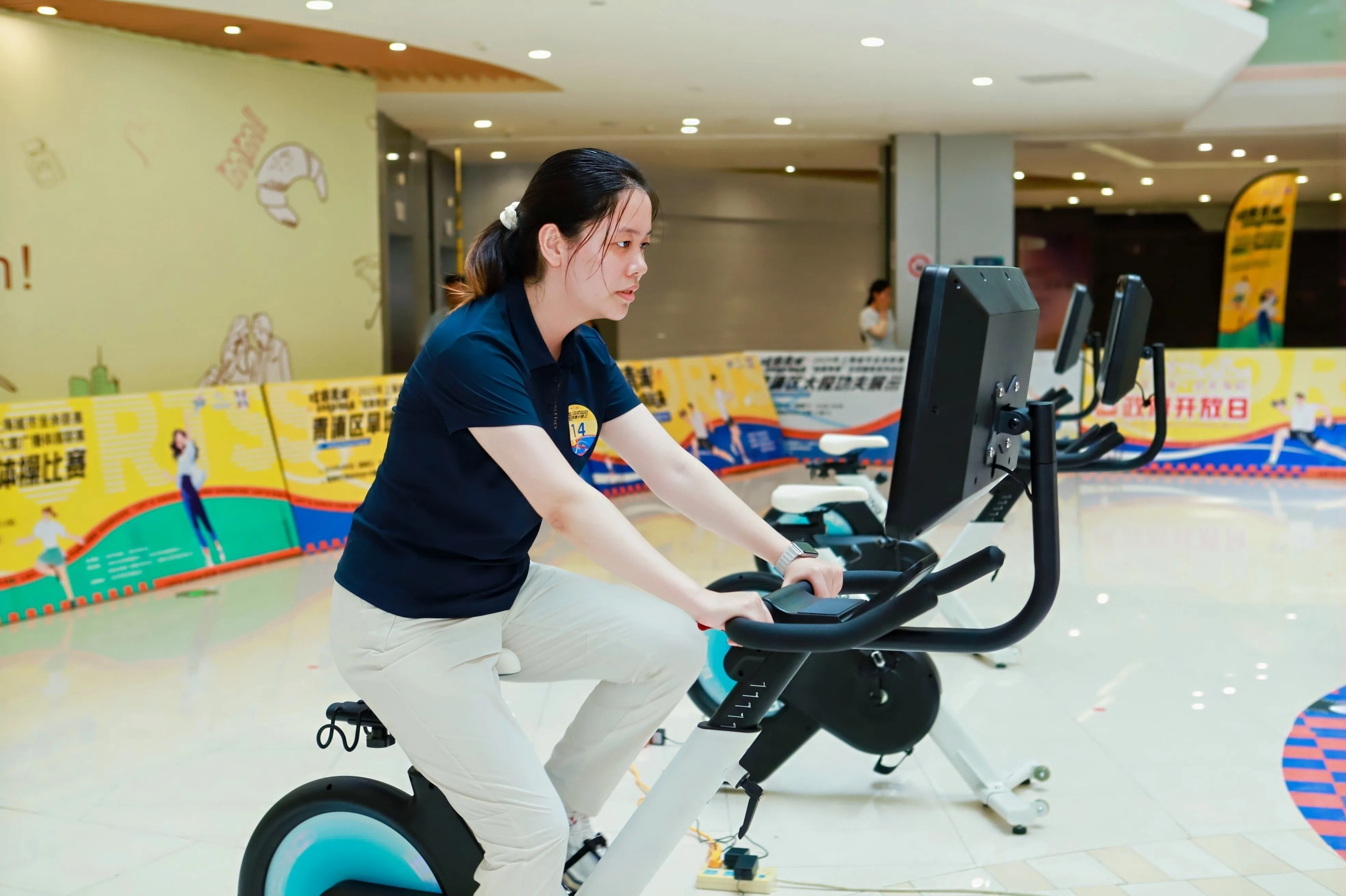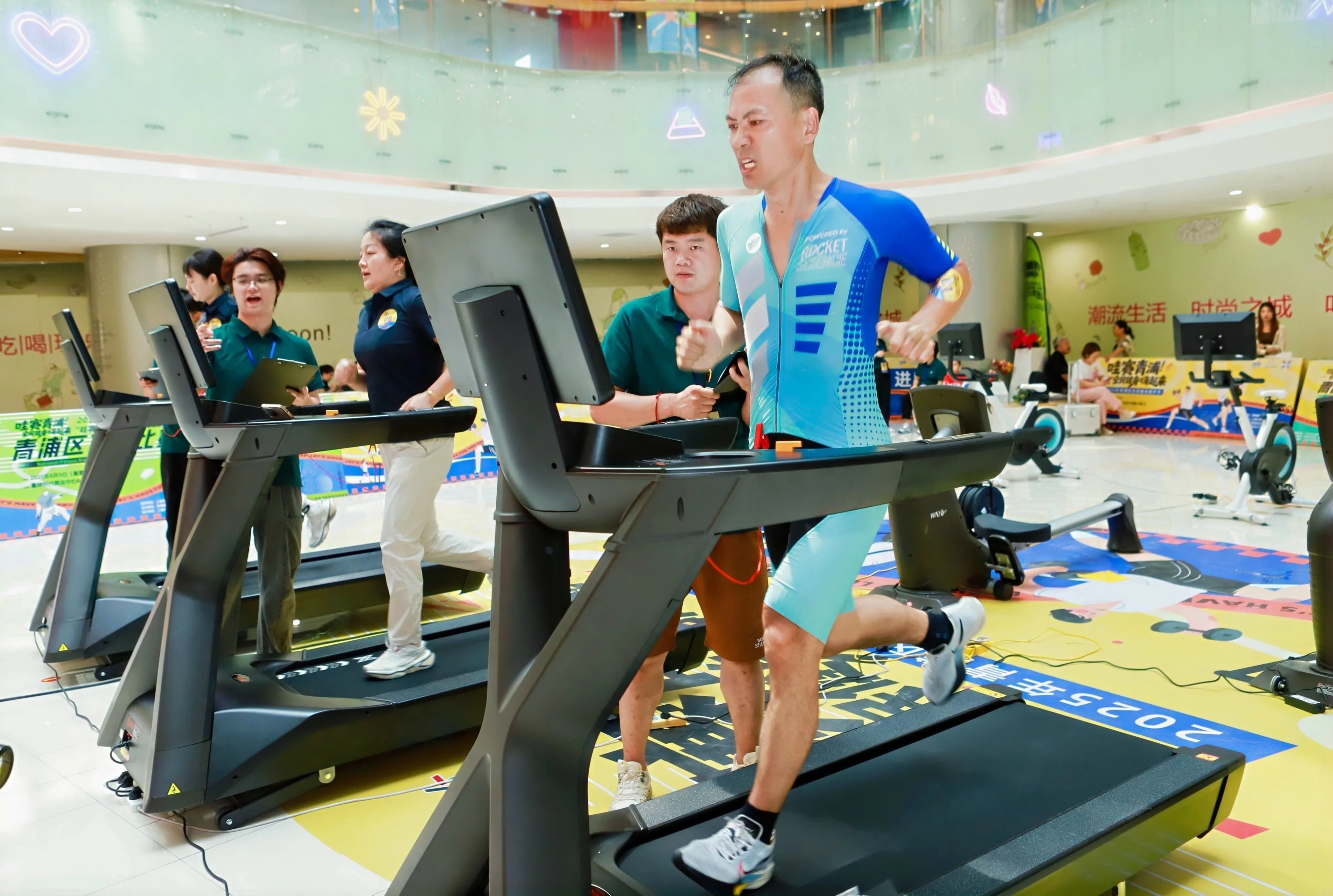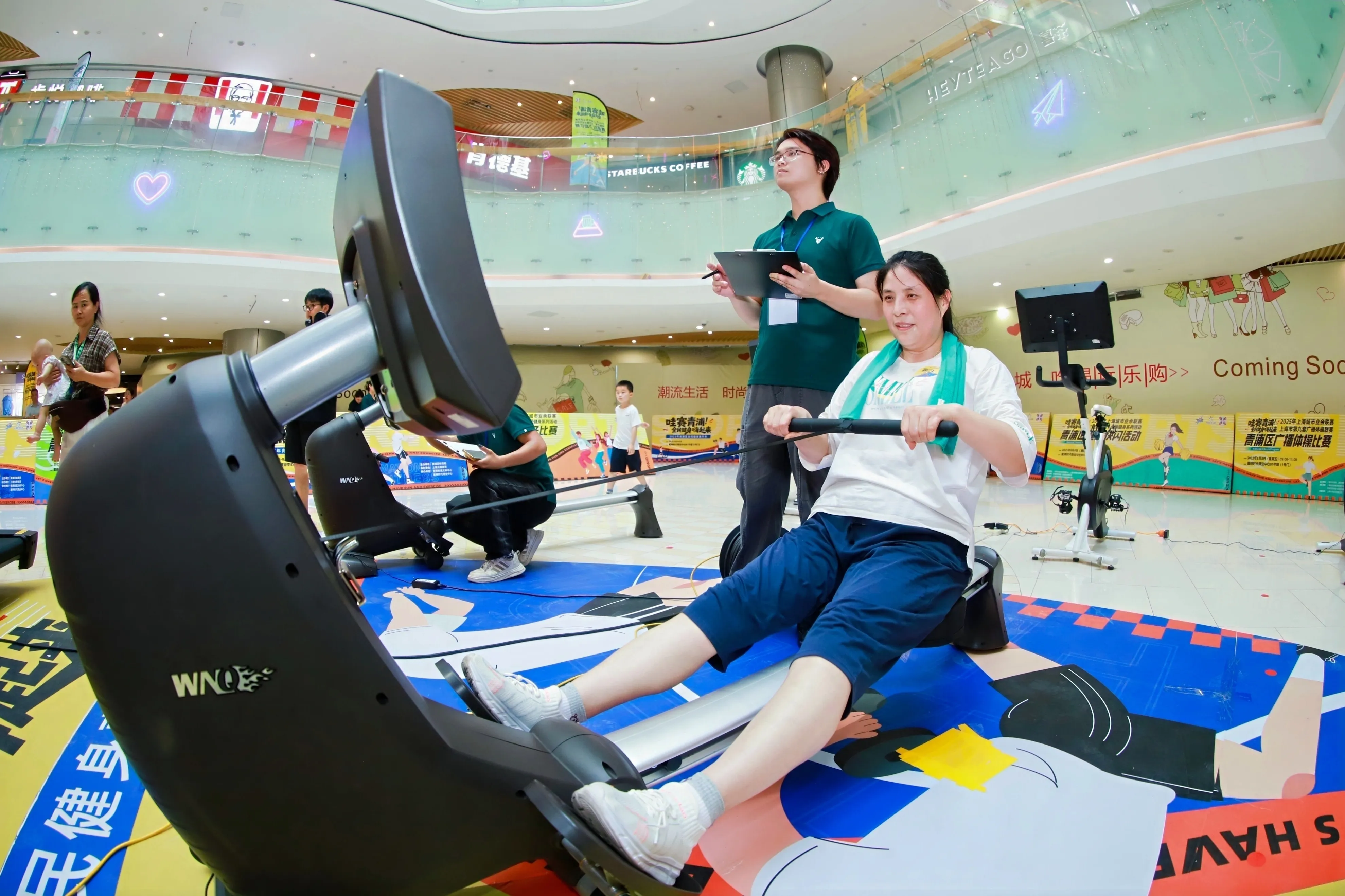 The "Dryland Mini Triathlon," a popular new type of fitness event in recent years, integrates running, stretching, and cycling, breaking the limitations of traditional venues by using indoor fitness equipment instead of outdoor routes, making it more in line with the lifestyle and fitness habits of modern urban dwellers. This event is open to the public in Qingpu District, combining competitiveness and fun, which not only increases participation but also comprehensively promotes the concept of "scientific fitness and participation for all."